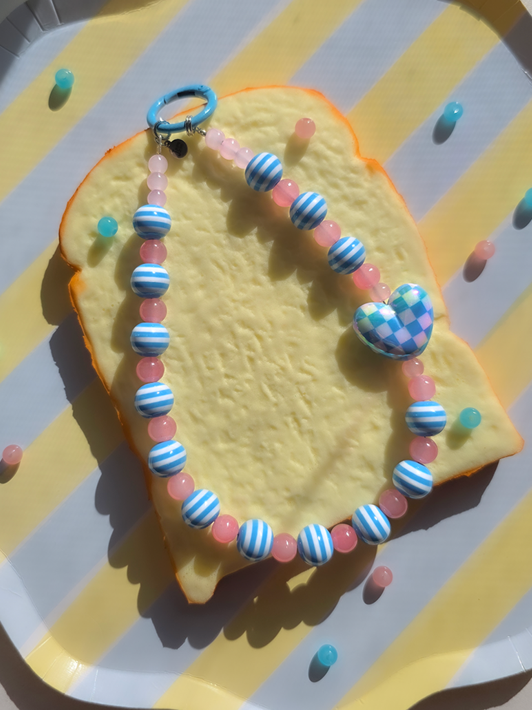 • MATERIAL:  Keyring Version - Acrylic Beads, Glass Beads, Wire String, Metal Hardware• LENGTH: Strap - approx. 5.5in (string attachment not included)