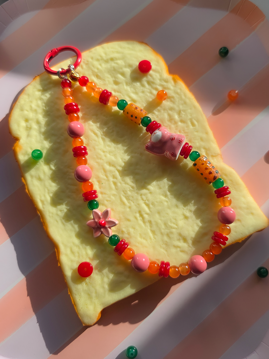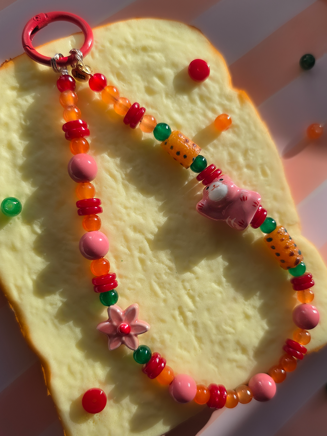 • MATERIAL: Keyring Version - Acrylic Beads, Glass Beads, African Beads from Ghana, Wire String, Metal Hardware• LENGTH: Strap - approx. 5in